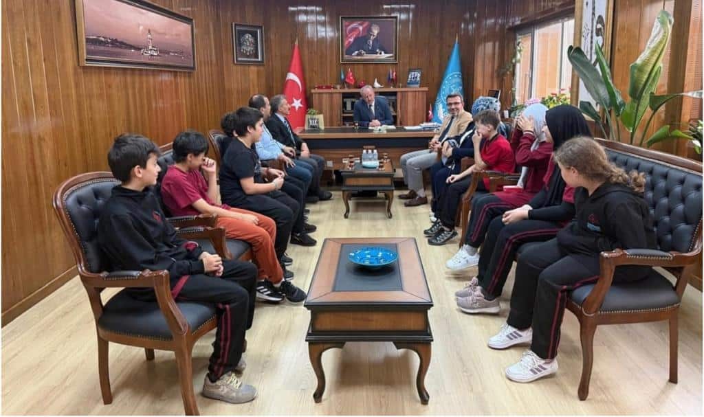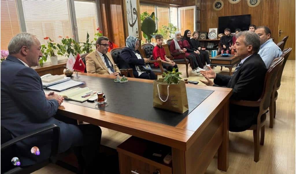 milli Eğitim Müdürümüz Semih Durmuş,okulumuzun Bİ'OKUYA(Bilinçli Okuma ve Yazarlık Atölyesi) projesinde yer alan öğrencilerimizi makamında ziyaret etti.Öğrencilerimiz kendi yazdıkları kitabı İlçe Müdürümüze takdim etttiler.